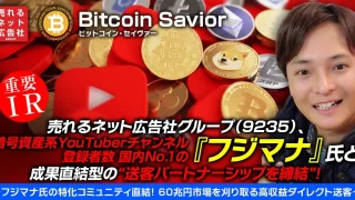 投資 売れるネット広告社グループ、暗号資産系YouTuber国内No.1『フジマナ』氏と送客パートナーシップを締結