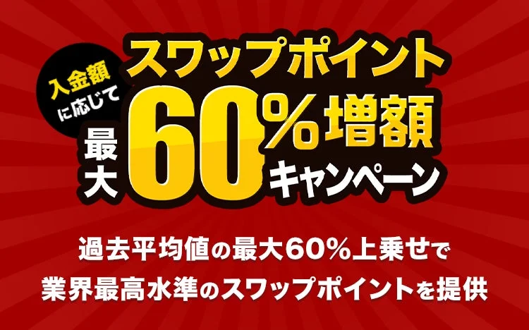 キャンペーン期間中の入金額(純増額)に応じて、受取スワップポイントの過去平均値に対する上乗せ率が変動します。