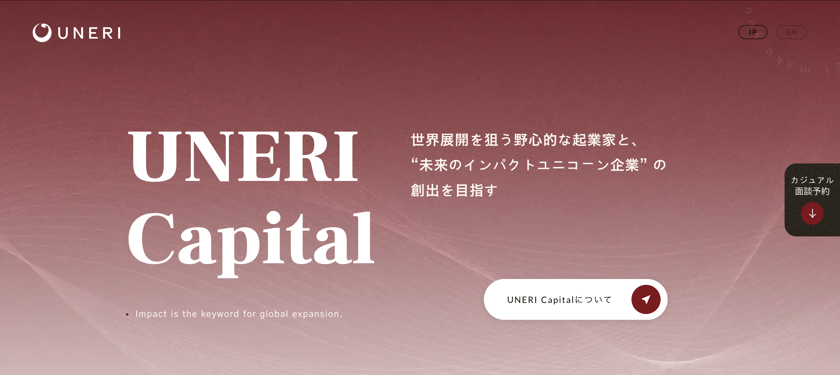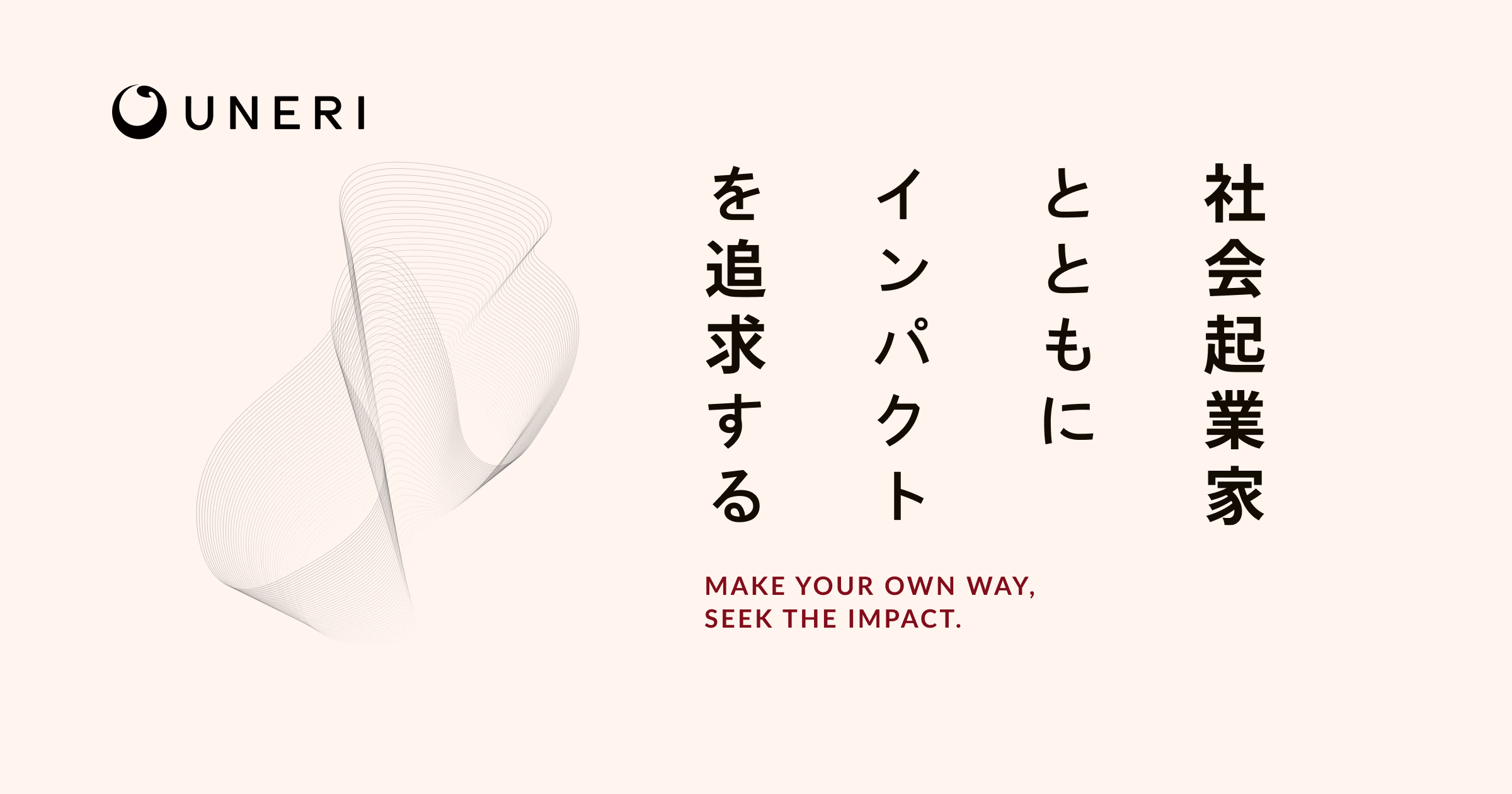 株式会社UNERIは、「起業家の尊厳を回復させ、全てのイノベーターが自分の道を歩める社会をつくる」というミッションのもと、2020年に設立されました。社会課題系スタートアップの人材育成・企業/行政連携・投資事業を展開しています。2025年4月には投資事業を開始し、UNERI Capitalというファンドを通じて投資を実施しています。